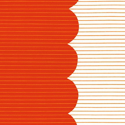 Scallop Single Border in Basil, Blueprint, Roasted Pecan, Tangerine, Steel, and Zinc. These screen printed fabrics are all from the Harriot Collection, by Carolyn Friedlander, for Robert Kaufman Fabrics. These fabrics are made from 100% cotton fibers and are quilting weight. Each color features a border design on one selvage edge only. There are six different colors for a total of six prints in this bundle.