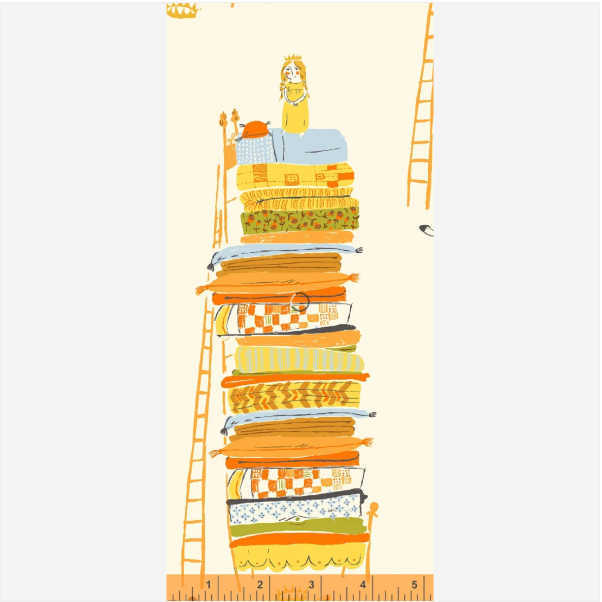Princess and the Pea in Ochre, from the Far Far Away Collection, by Heather Ross for Windham Fabrics. 100% cotton fabric. This is a quilting-weight cotton fabric.